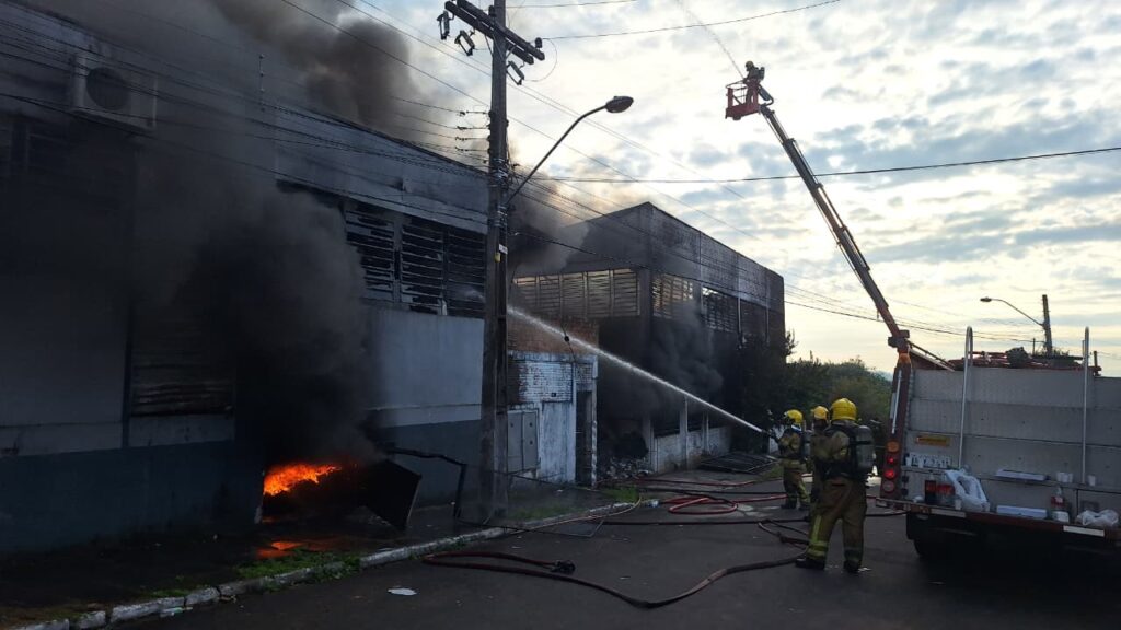 O prédio de dois andares serve como depósito de materiais inflamáveis como cuias e EVA, composto petroquímico altamente inflamável. Cinco equipes do Corpo de Bombeiros foram acionadas para combater as chamas e estão no local há mais de seis horas.