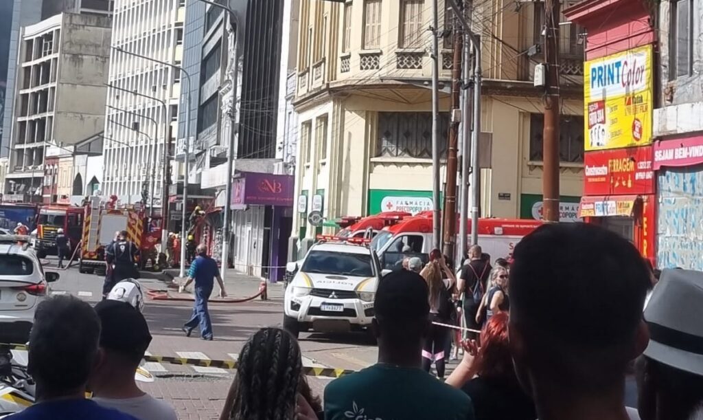 O fogo, que começou pouco antes das 15h desta desta quarta-feira, atinge duas casas antigas (uma delas com data de construção de 1884) localizadas na Praça XV, Centro Histórico de Porto Alegre. No local, funcionavam um bazar e uma loja de calçados.