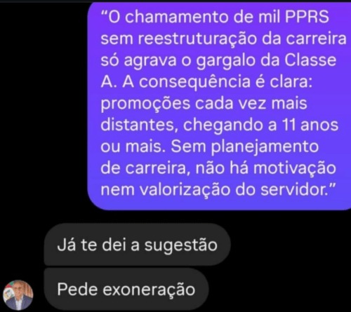 A Secretaria de Sistemas Penal e Socioeducativo esclarece que a imagem reproduzida é de um recorte de uma conversa particular do secretário com um servidor em uma rede social, que foi tirada de contexto. O assunto em questão era a confirmação de cerca de 500 promoções funcionais na Polícia Penal e o chamamento de cerca de 1.000 servidores aprovados no último concurso público. O servidor não concordou com tais medidas, comemoradas pela imensa maioria da Polícia Penal. E a ponderação do secretário foi no sentido de que todo servidor, seja na iniciativa privada ou no público, não estando satisfeito precisa rever sua situação funcional.